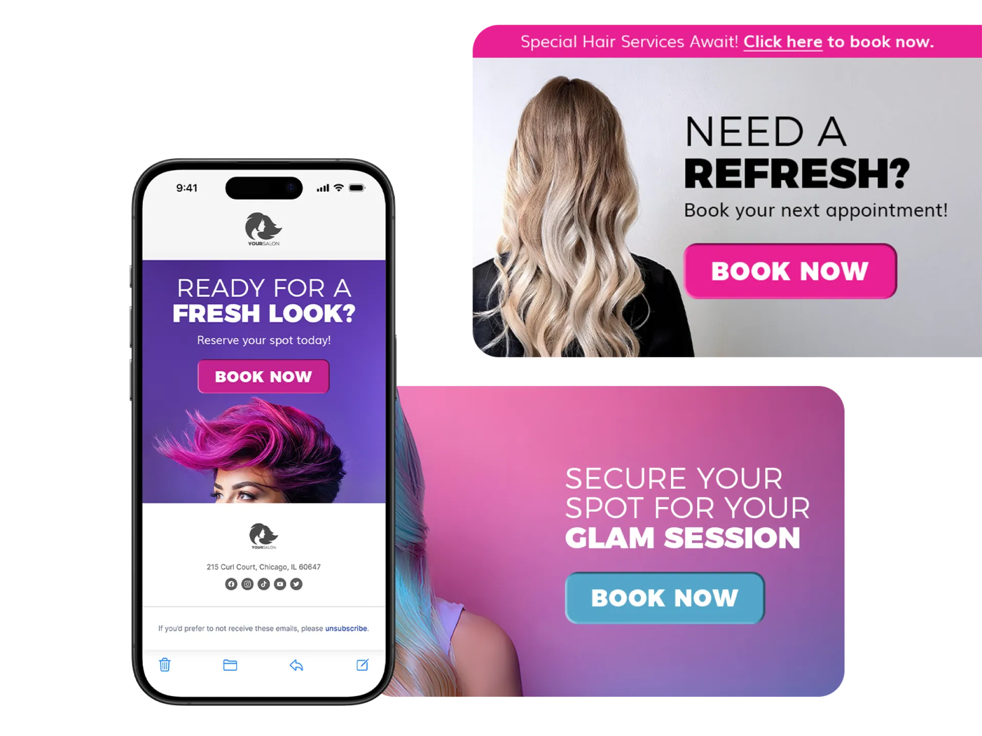 On Behalf Marketing service promotion emails can significantly enhance your business by driving more appointments and building trust with clients. These emails keep your services top-of-mind and engage clients even when they're not in the salon. On Behalf Marketing promotions save you time by managing the design and scheduling for you, allowing you to focus on your craft.
