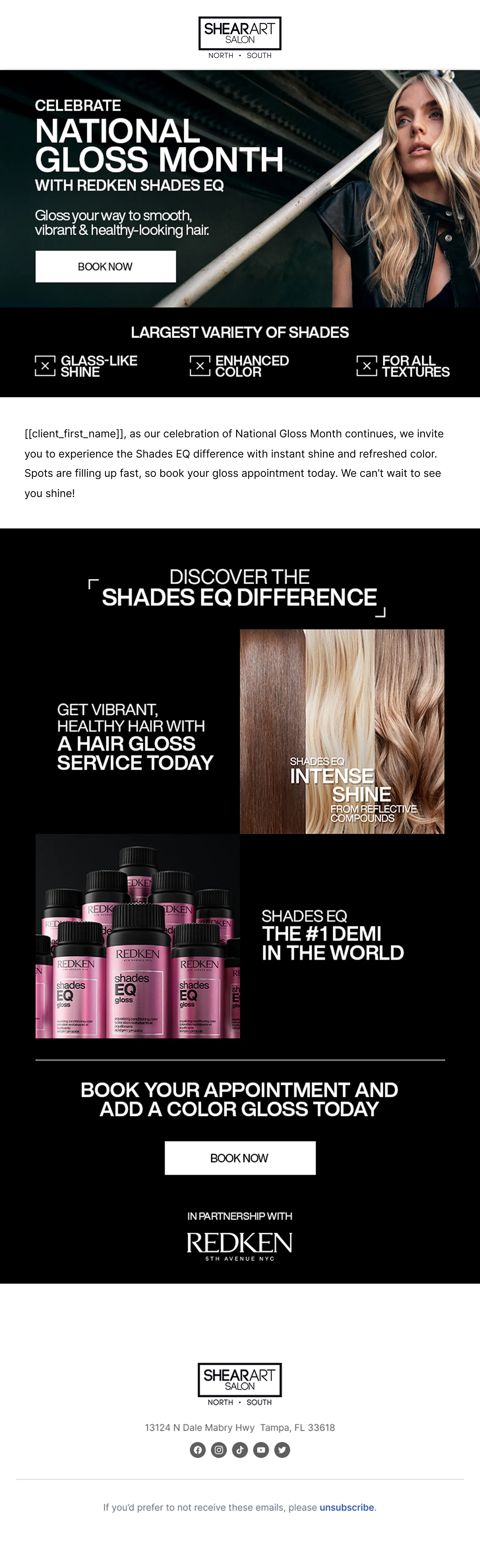 Service OBM campaigns are fully automated, brand-backed campaigns designed to drive more service appointments—at no cost to you (the salon). Just like OBM retail campaigns, they’re sent on the your behalf and styled to look like they’re coming directly from the you. By partnering with professional brands, these campaigns help boost visibility and fill more appointment slots effortlessly.